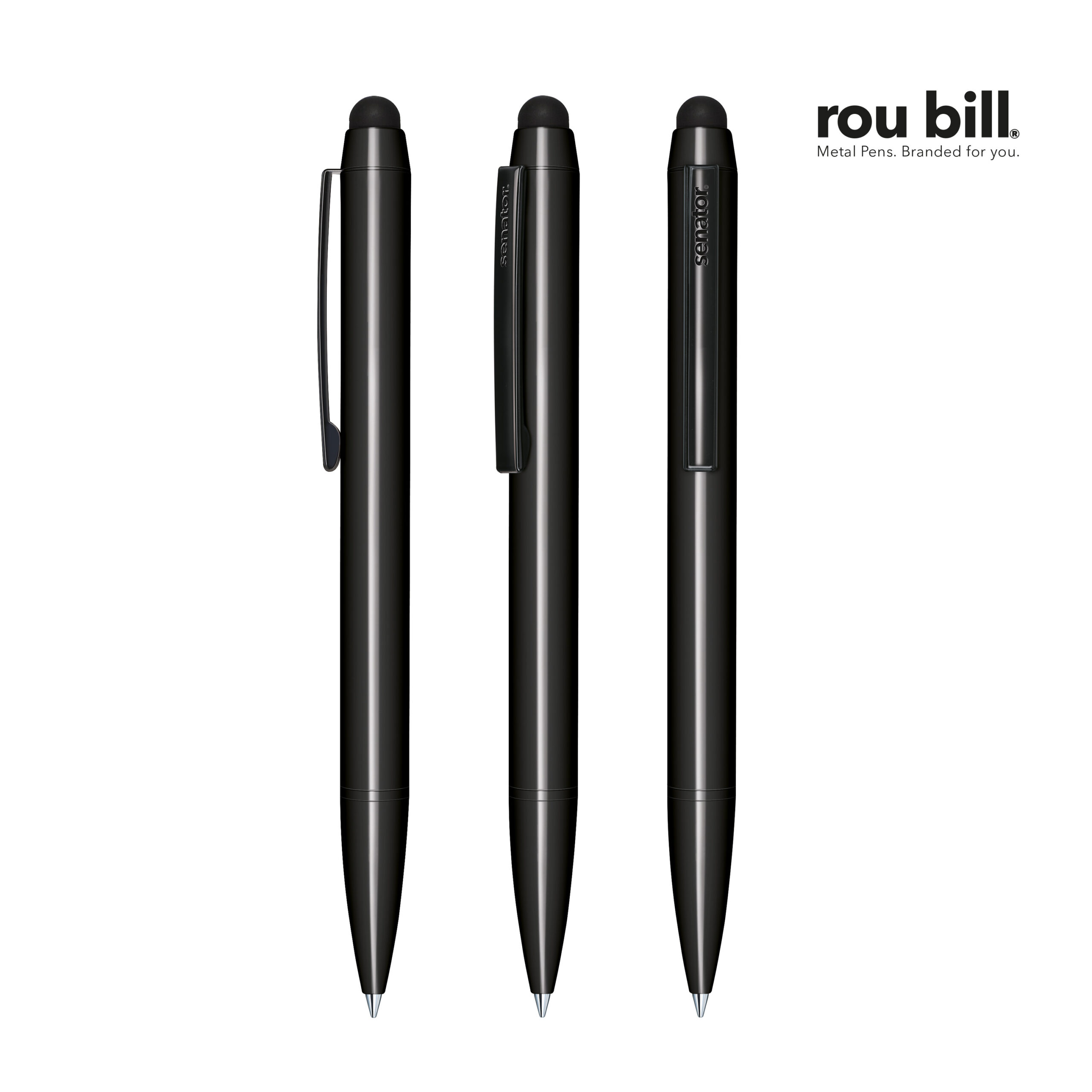 Roubill Attract – Kierretoiminen kuulakärkikynä Touch Pad -toiminnolla. Runko: Metallia, kiiltävä lakattu pinta. Kiinnikkeet: Metallia, musta lakattu. Roubill-metallisäiliö, G2, musteen väri: sininen.