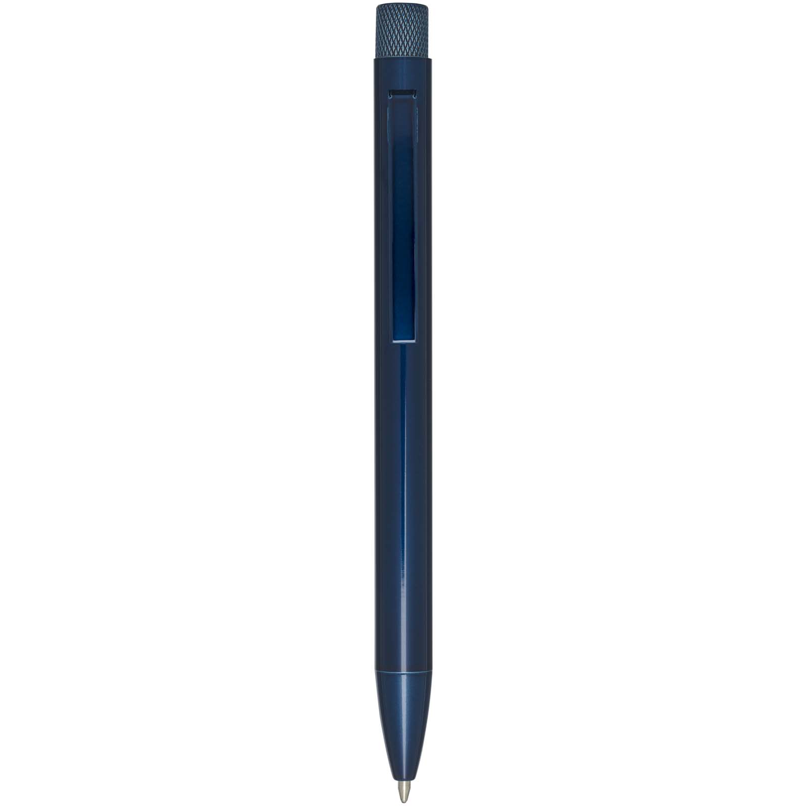 Kuulakärkikynä, jossa on värillinen spraypinnoite. Painike ja kärki on valmistettu messingistä, runko kierrätetystä messingistä ja klipsi raudasta. Musteen väri: Sininen. Kirjoituspituus: 1000 metriä. Kirjoitusjäljen paksuus: 1,0 mm. Toimitetaan lahjapakkauksessa.