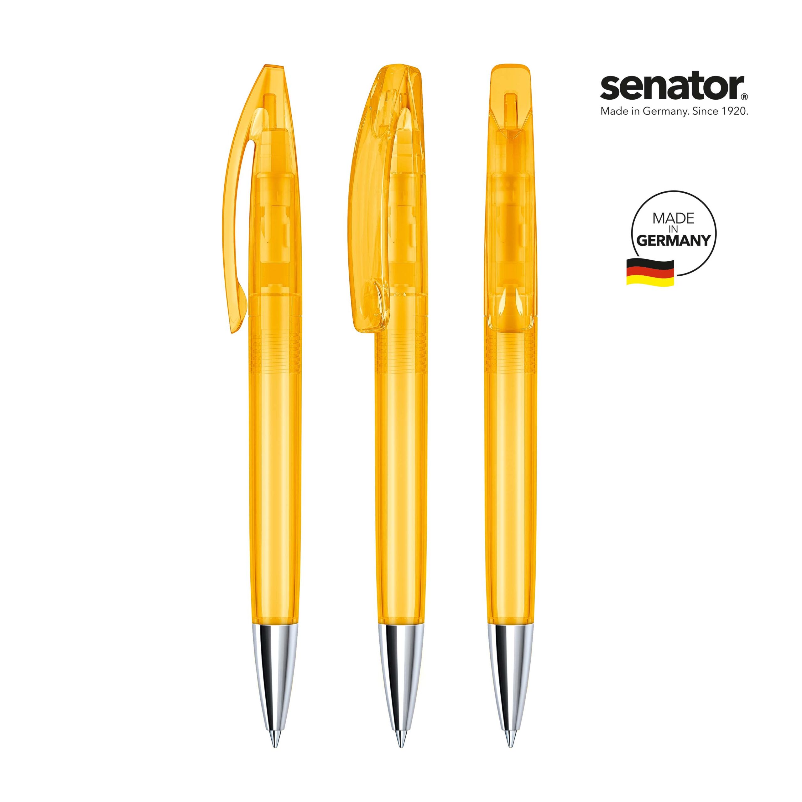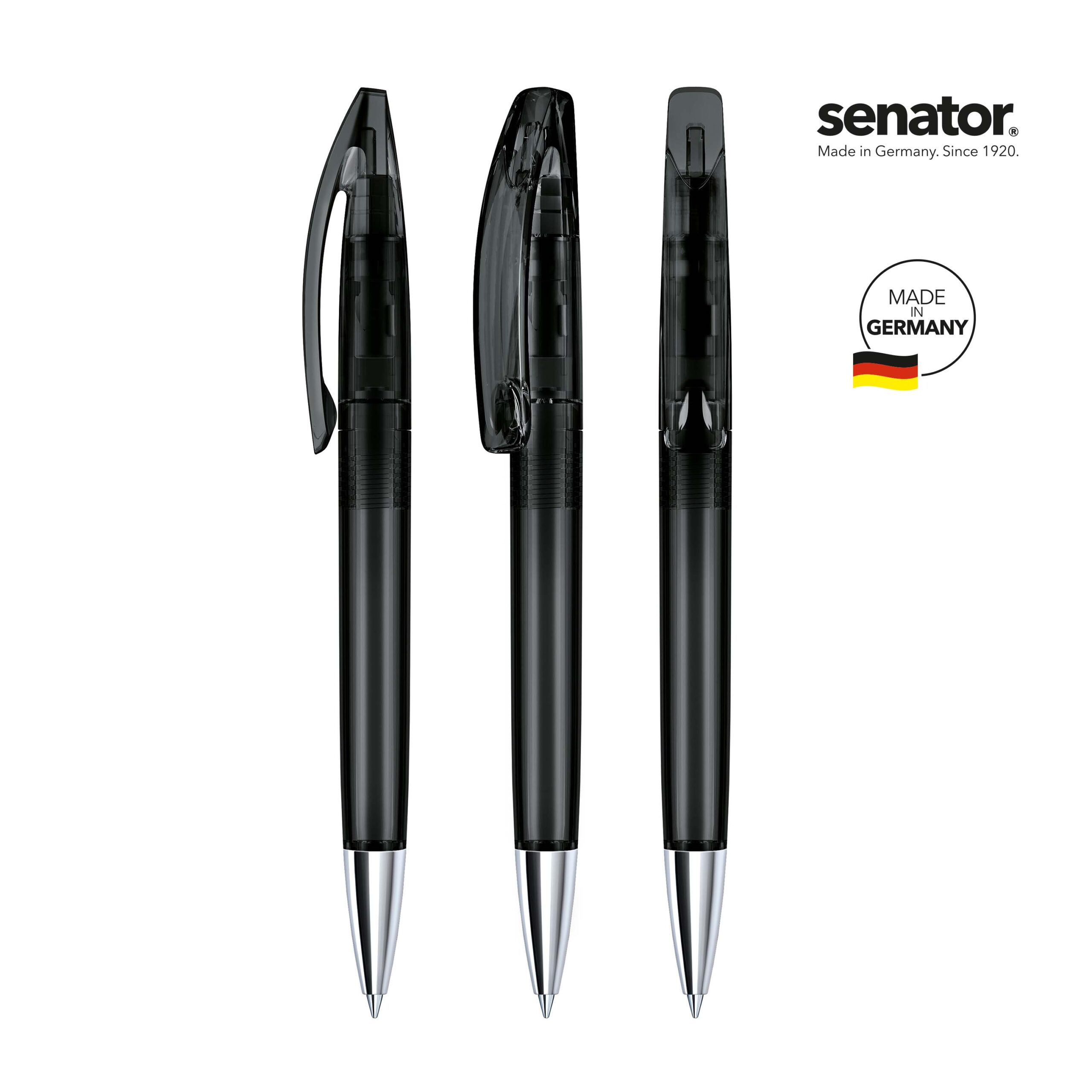 senator® Bridge Clear MT kuulakärkikynä kierremekanismilla. Läpikuultava, kirkas runko ja klipsi. Metallikärki. senator® magic flow G2 mustesäiliö (1.0 mm), musteen väri: sininen tai musta