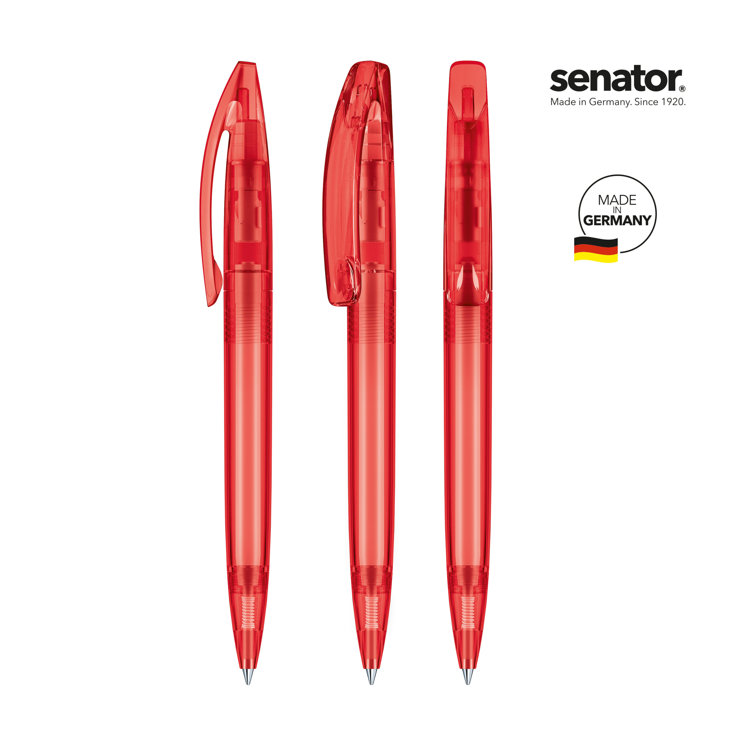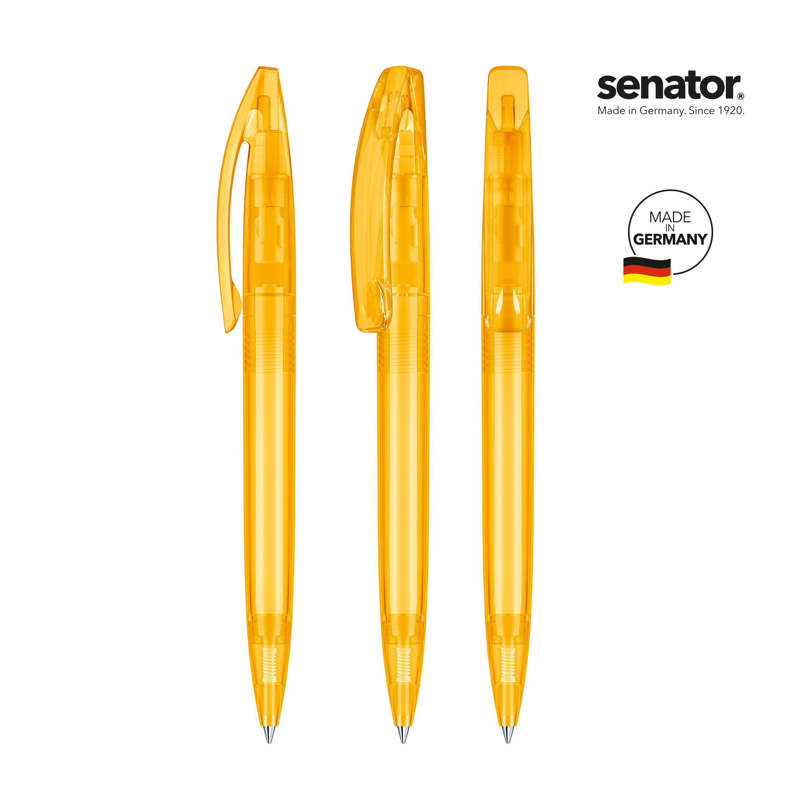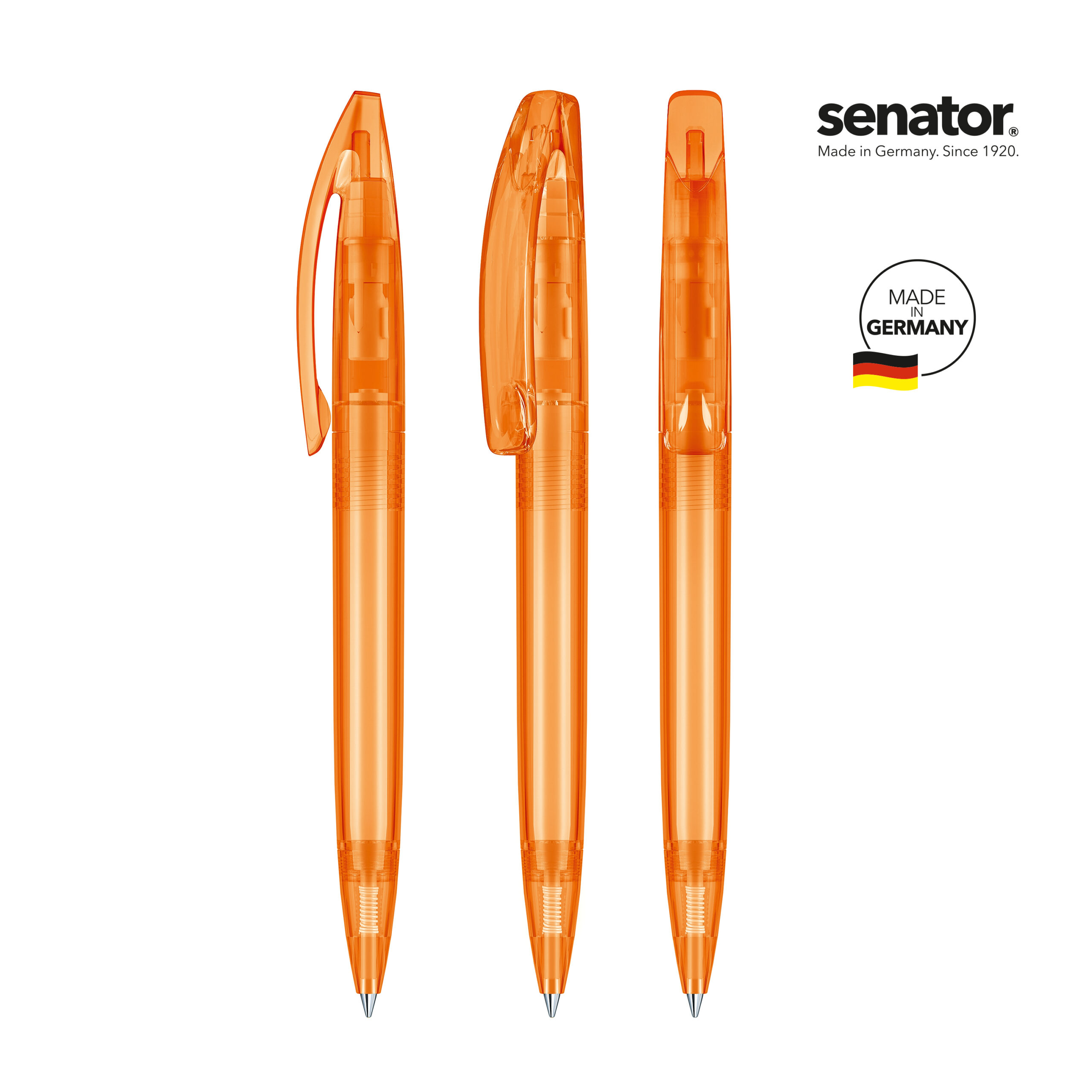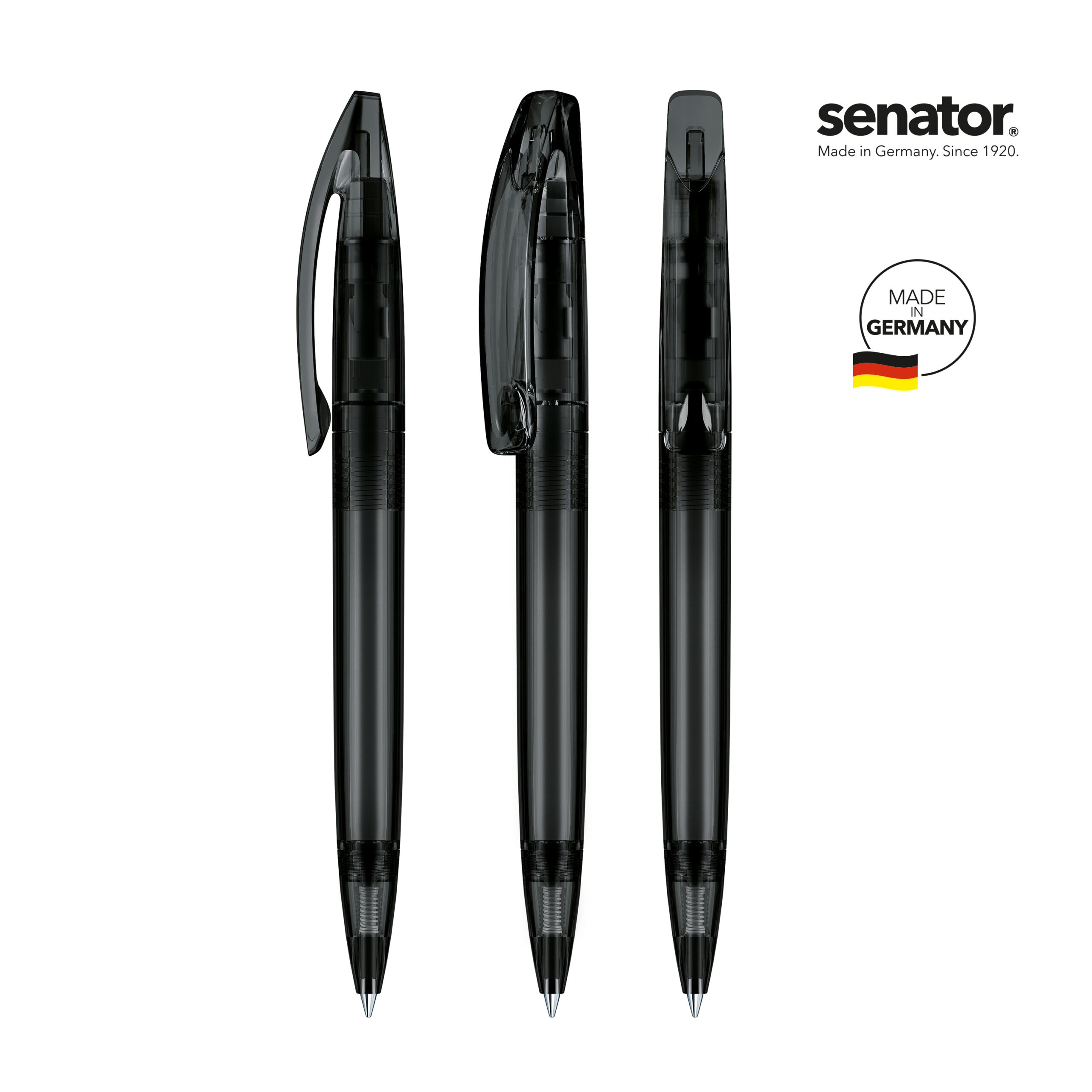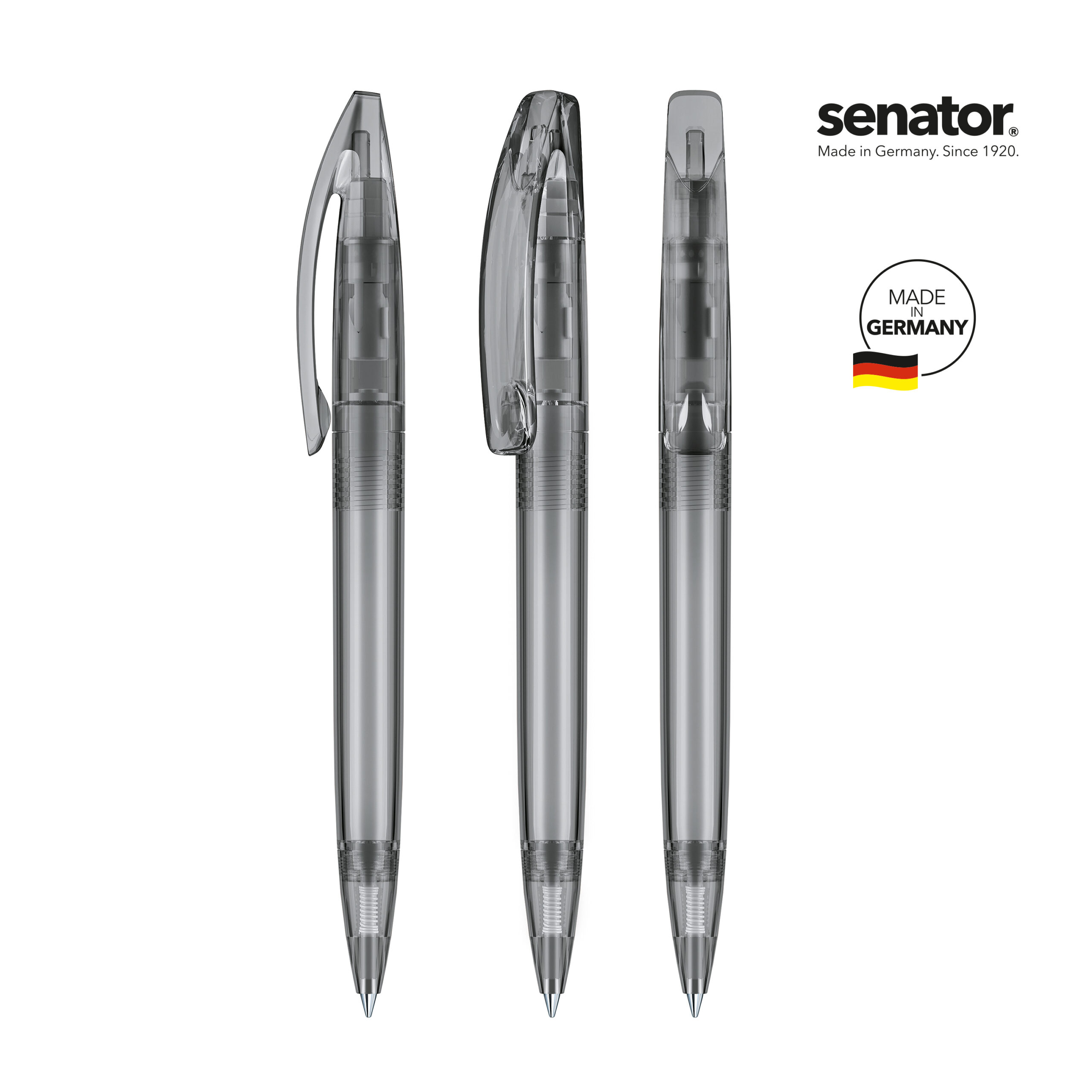 senator® Bridge Clear kuulakärkikynä kierremekanismilla. Läpikuultava, kirkas runko ja klipsi. senator® magic flow G2 mustesäiliö (1.0 mm), musteen väri: sininen tai musta