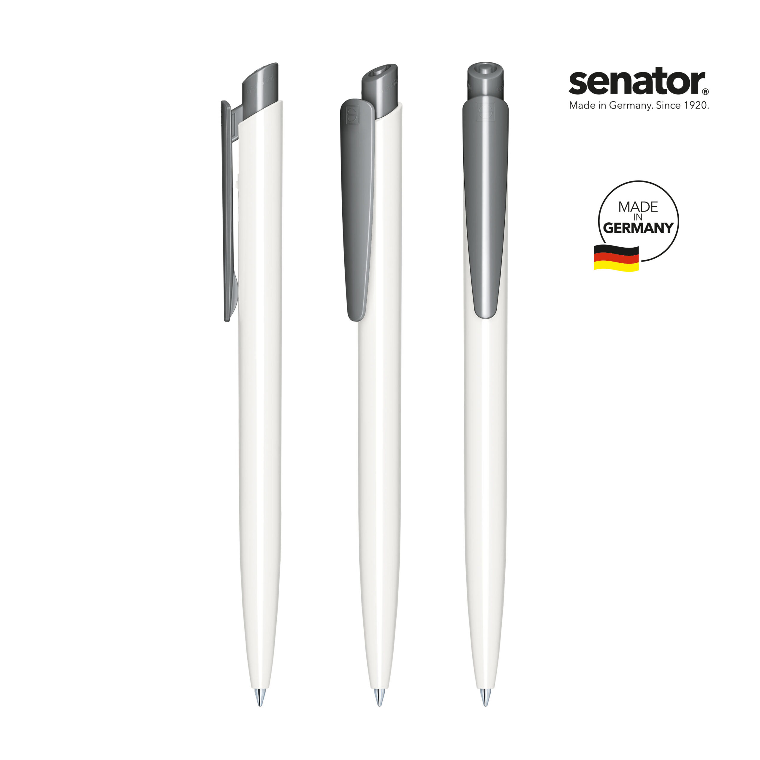 senator® Dart Polished Basic kuulakärkikynä. Värillinen klipsi, valkoinen runko, senator® magic flow X20 mustesäiliö (1.0 mm), musteen väri: sininen tai musta