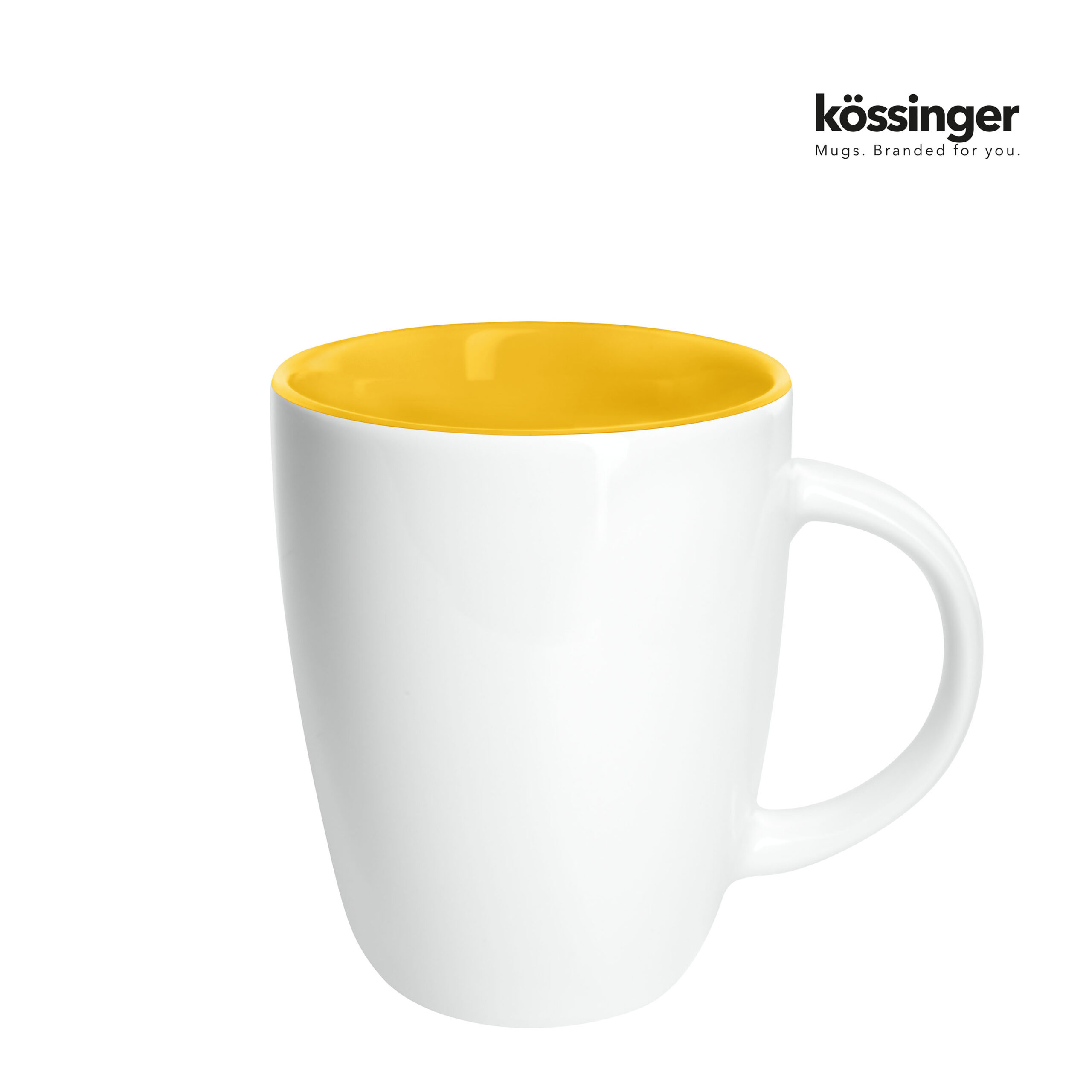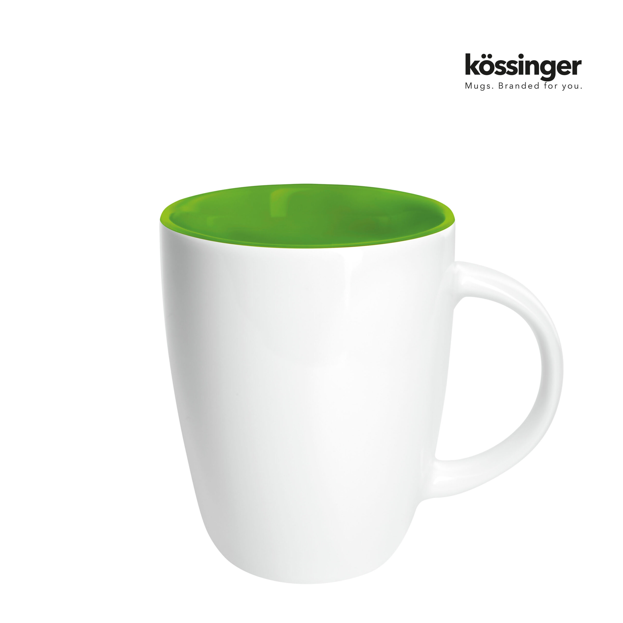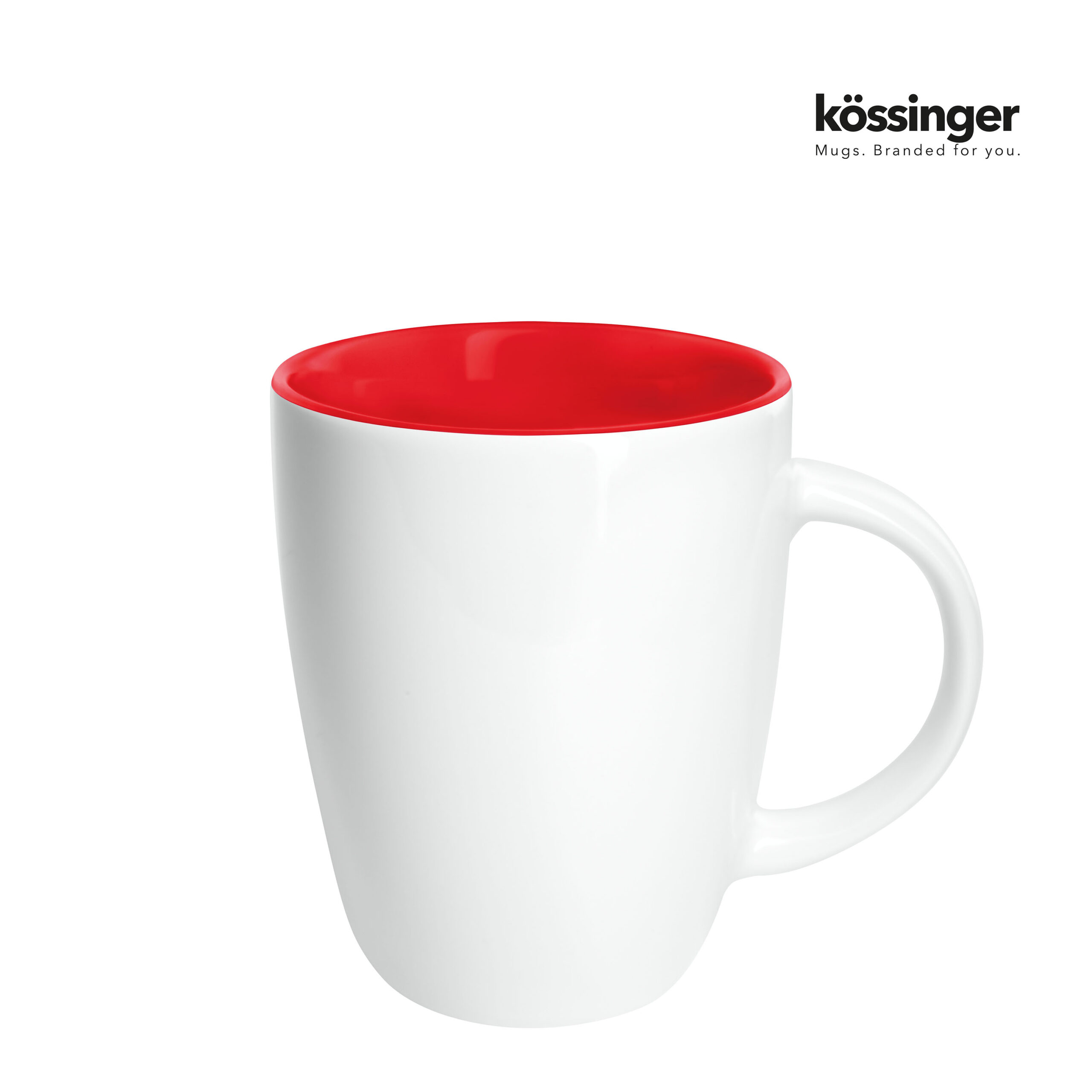 Kössinger Elektra Inside muki – Tyylikäs kivitavarasta valmistettu muki modernissa muotoilussa, korkeakiilto valkoinen ulkopinta ja värillinen sisäglasointi. Mitat: korkeus noin 100 mm, halkaisija noin 82 mm, tilavuus noin 0,25 l.