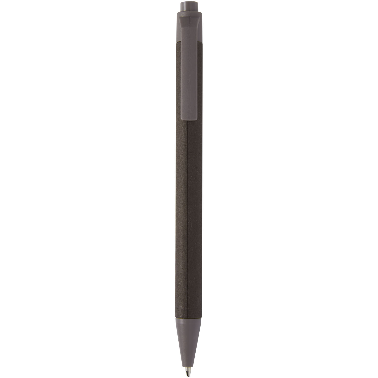 Kevyt kuulakärkikynä arjen muistiinpanoihin. Varsi on valmistettu vastuullisesti hankitusta rypistetystä paperista. Ruskea paperi sisältää kahvin jäämiä, vihreä oliivien jäämiä ja valkoinen maissin jäämiä. Alaosa, klipsi ja kärki ovat valmistettu PLA-muovista. Musta muste. Kirjoituspituus: 700 metriä.