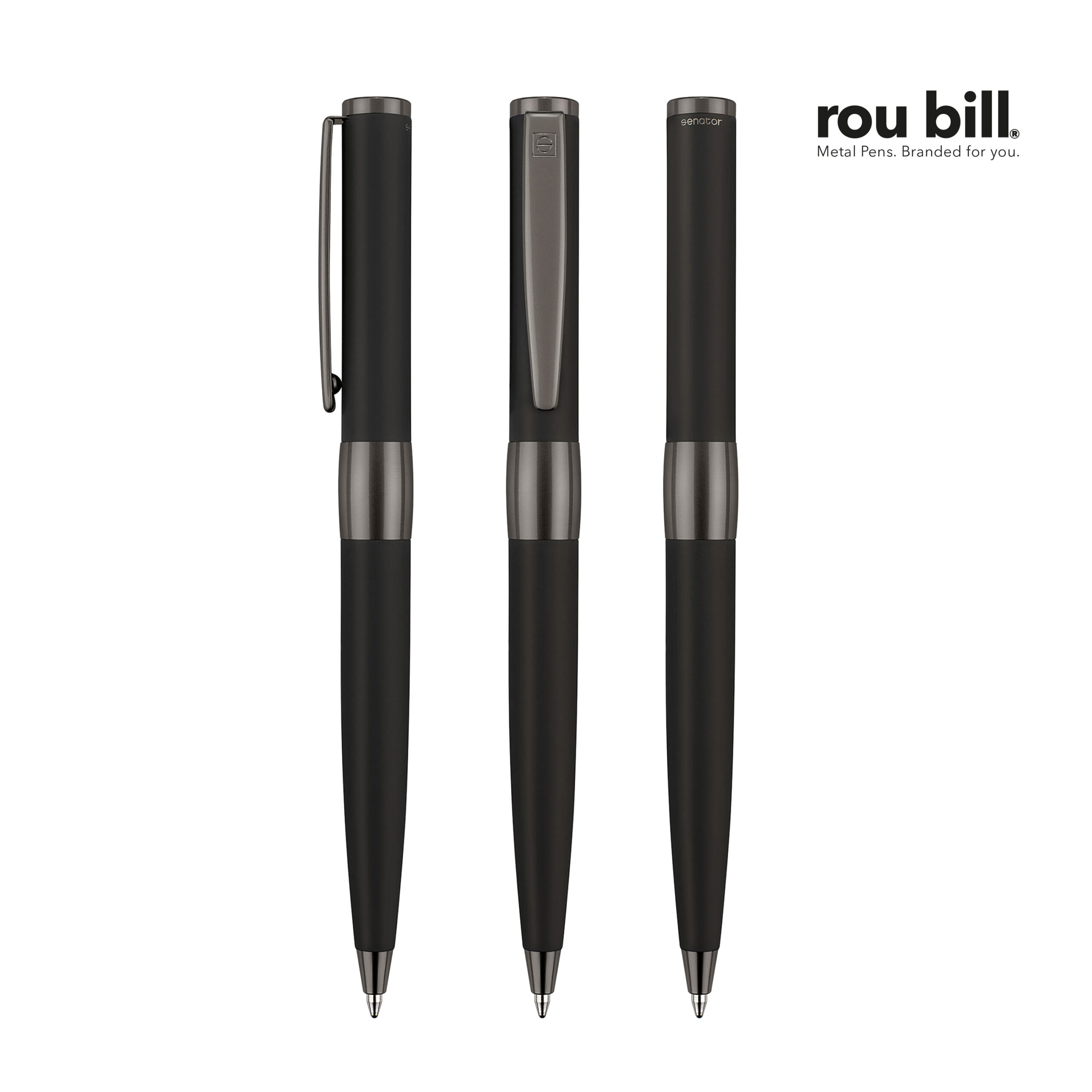 Roubill Image musta Line twist ball pen. Runko: Metalli, pehmeä lakkaus. Kiinnikkeet: Metalli, harmaanmusta. Roubill-metallisäiliö, G2, musteen väri: sininen.
