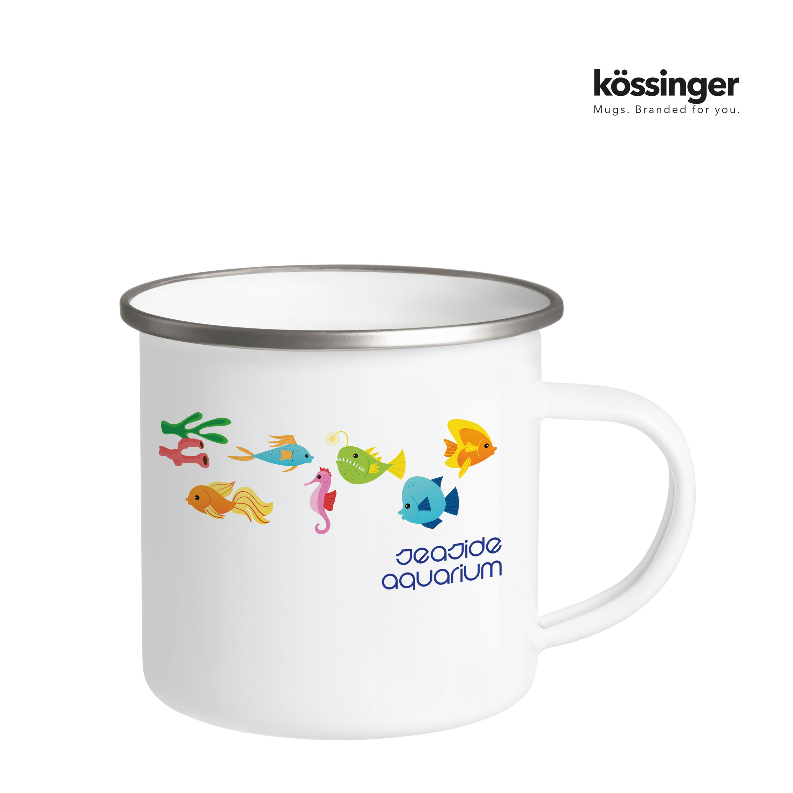 Kössinger Pics ulkoilma metallimuki, kiiltäväpintainen valkoinen viimeistely. Mitat: korkeus 81 mm, halkaisija 87 mm, tilavuus 0,30 l.