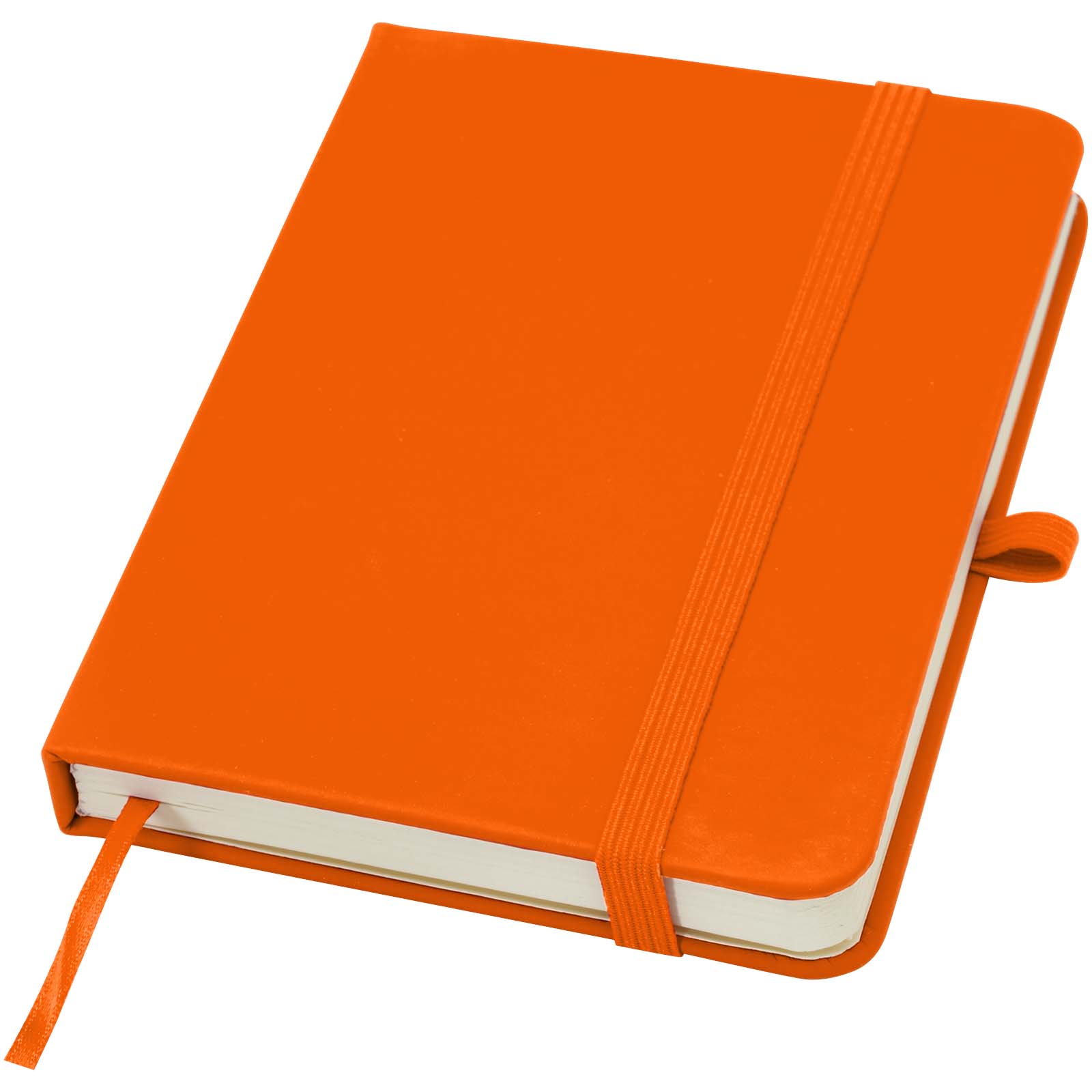 Kovakantinen Spectrum Plus A6-muistikirja pyöristetyillä kulmilla on välttämätön toimistotarvike ja lisäksi loistava tilaisuus mainostaa brändiäsi. Muistikirjan kansi on pehmeän tuntuinen ja se sisältää 80 kermanväristä 70 g/m²:n viiva-arkkia, jotka ovat ihanteellisia nopeiden ideoiden tai pitkien muistiinpanojen kirjoittamiseen. Muistivihkossa on kynälenkki, kuminauhasuljin, kirjanmerkkinaru ja haitaritasku.