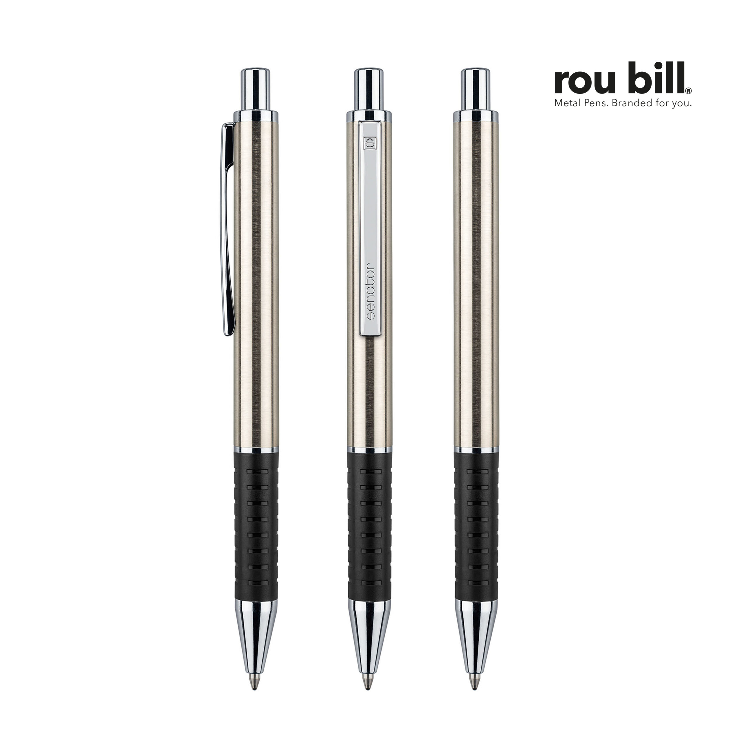 Roubill Star Tec Steel kuulakärkikynä, runko: Metal, brushed, Fittings: Metal, kiiltäväpintainen chrome, Soft grip zone: musta, Roubill metal mustesäiliö, G2, musteen väri: sininen