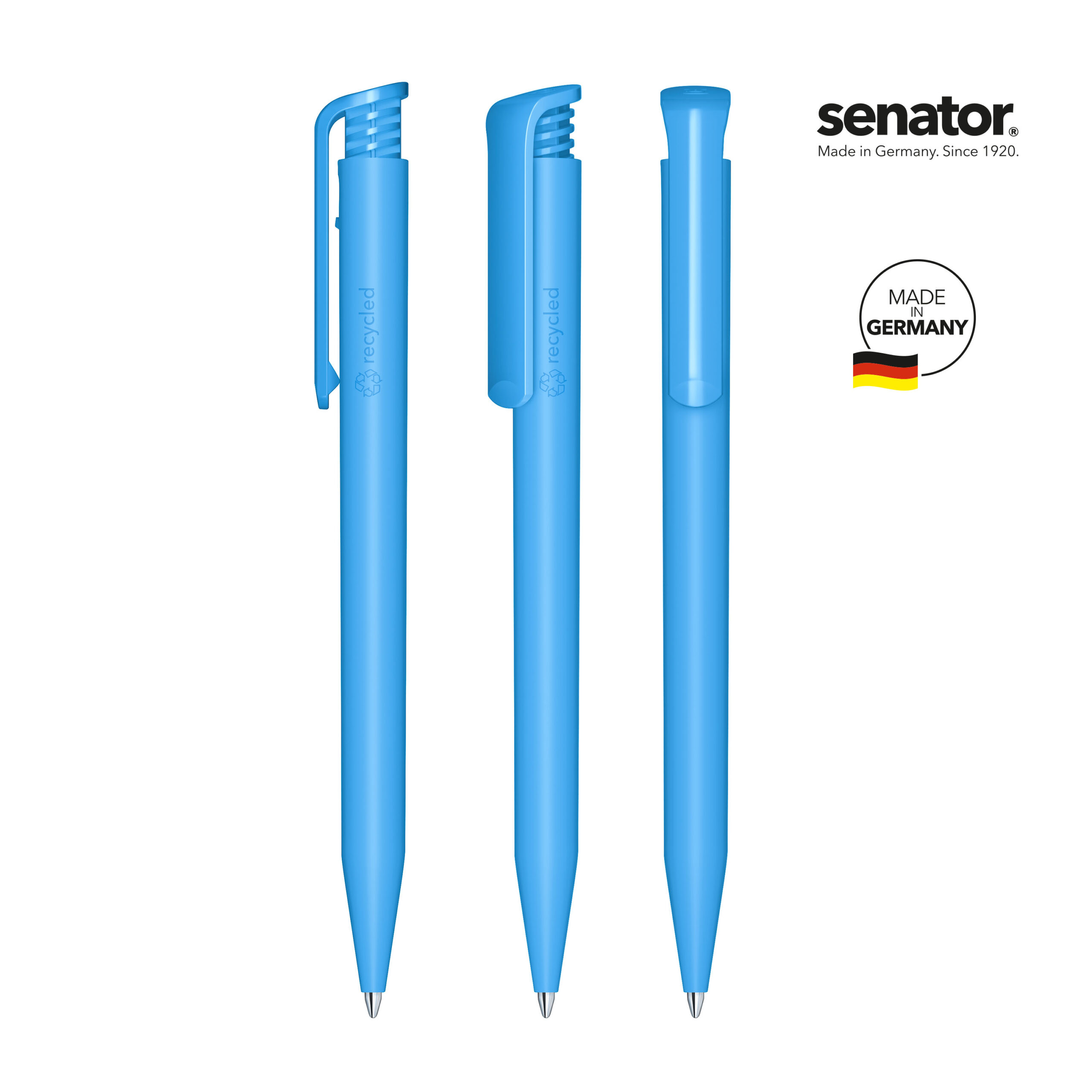 senator® Super Hit Matt kuulakärkikynä, mattapintainen runko, senator® magic flow X20 mustesäiliö (1.0 mm), musteen väri: sininen tai musta. Runkoon on kaiverrettu ”recycled” klipsin viereen.